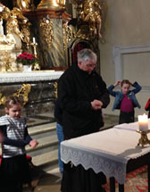 Nach einer Feiereinheit in der Klasse durfte jedes katholische Kind zu einem Einzelgespräch mit Pater Josef.